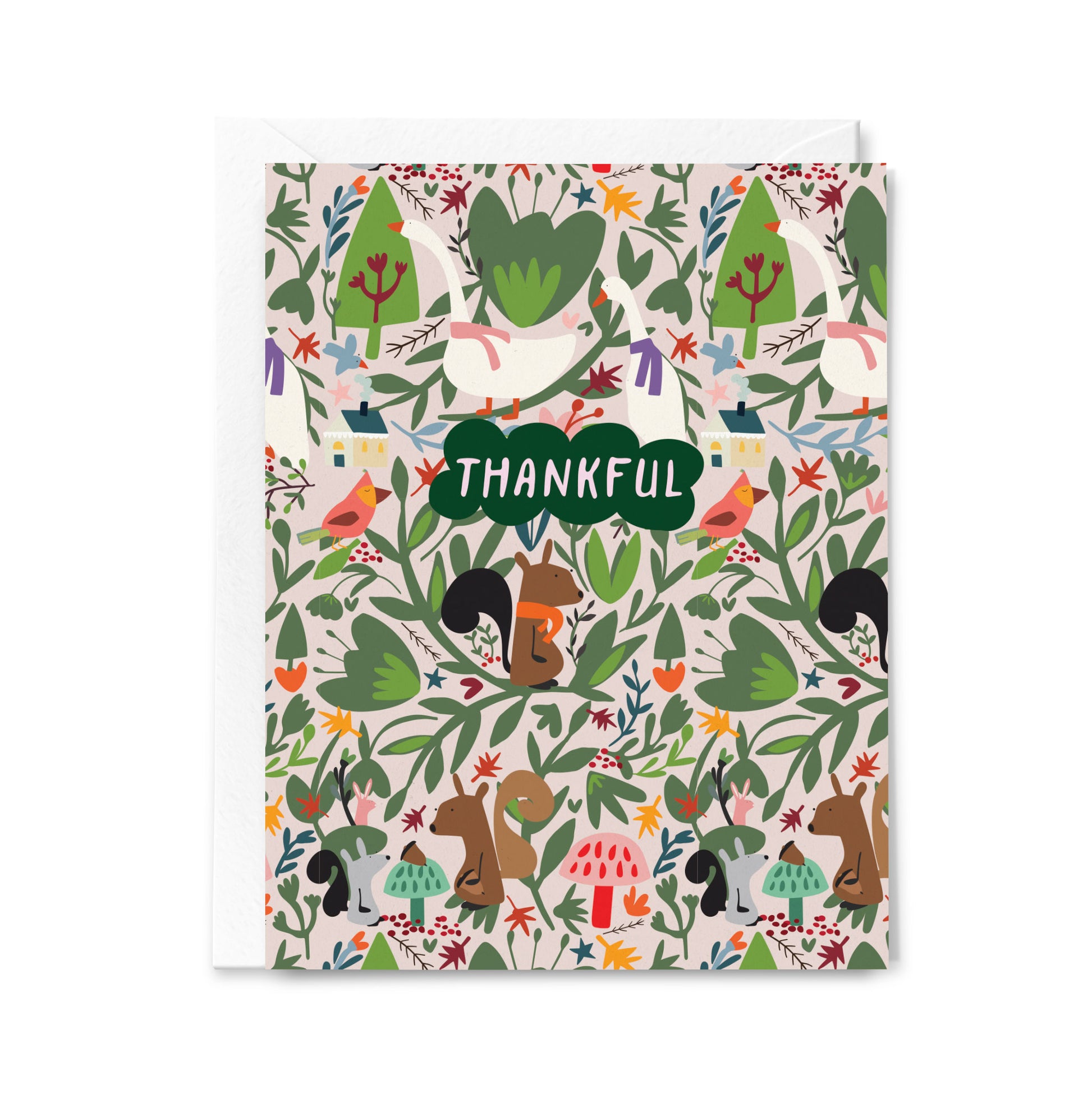 Celebrate gratitude and connection with this illustrated Thankful card. Featuring a bustling autumn woodland scene, complete with charming animals and rich fall colors, it’s a warm reminder of the beauty in community and togetherness. Whether you’re sending Thanksgiving wishes, sharing encouragement, or simply letting someone know they’re appreciated, this card brings joy in every season.